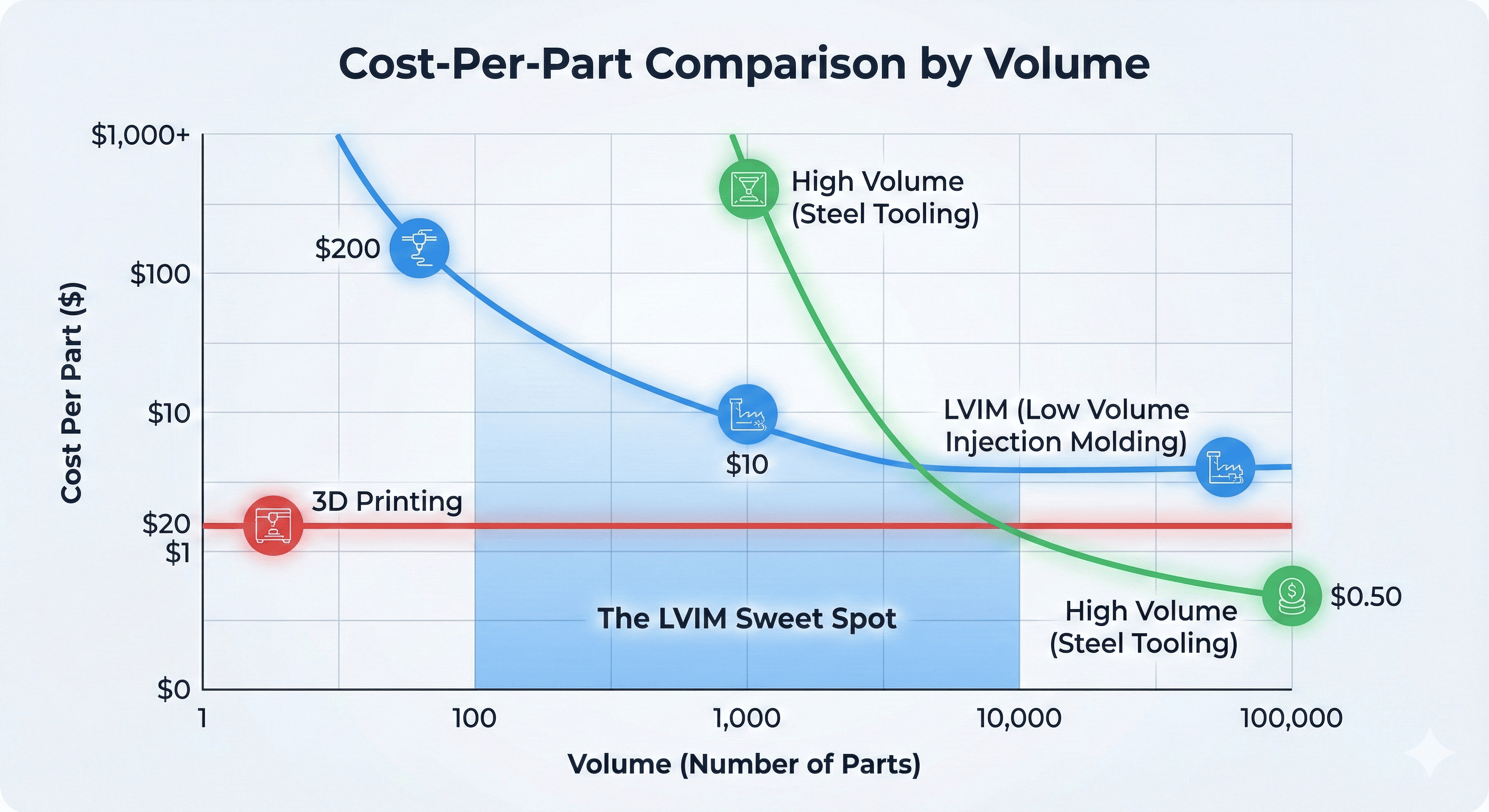 A gyártás svagyán gyakran falba ütközünk. Túlnőtted a 3D nyomtatás ingatag tűrőképességét, de még nem állsz készen arra, hogy 50 000 dollárt dobj egy edzett acélformára, amelynek megépítése három hónapig tart. Itt van Kis térfogatú fröccsöntés (LVIM) Ez az „édes hely” a hardvercsapatok számára, akiknek valódi alkatrészekre, valódi anyagokra és valódi sebességre van szükségük – vállalati szintű adósság nélkül.