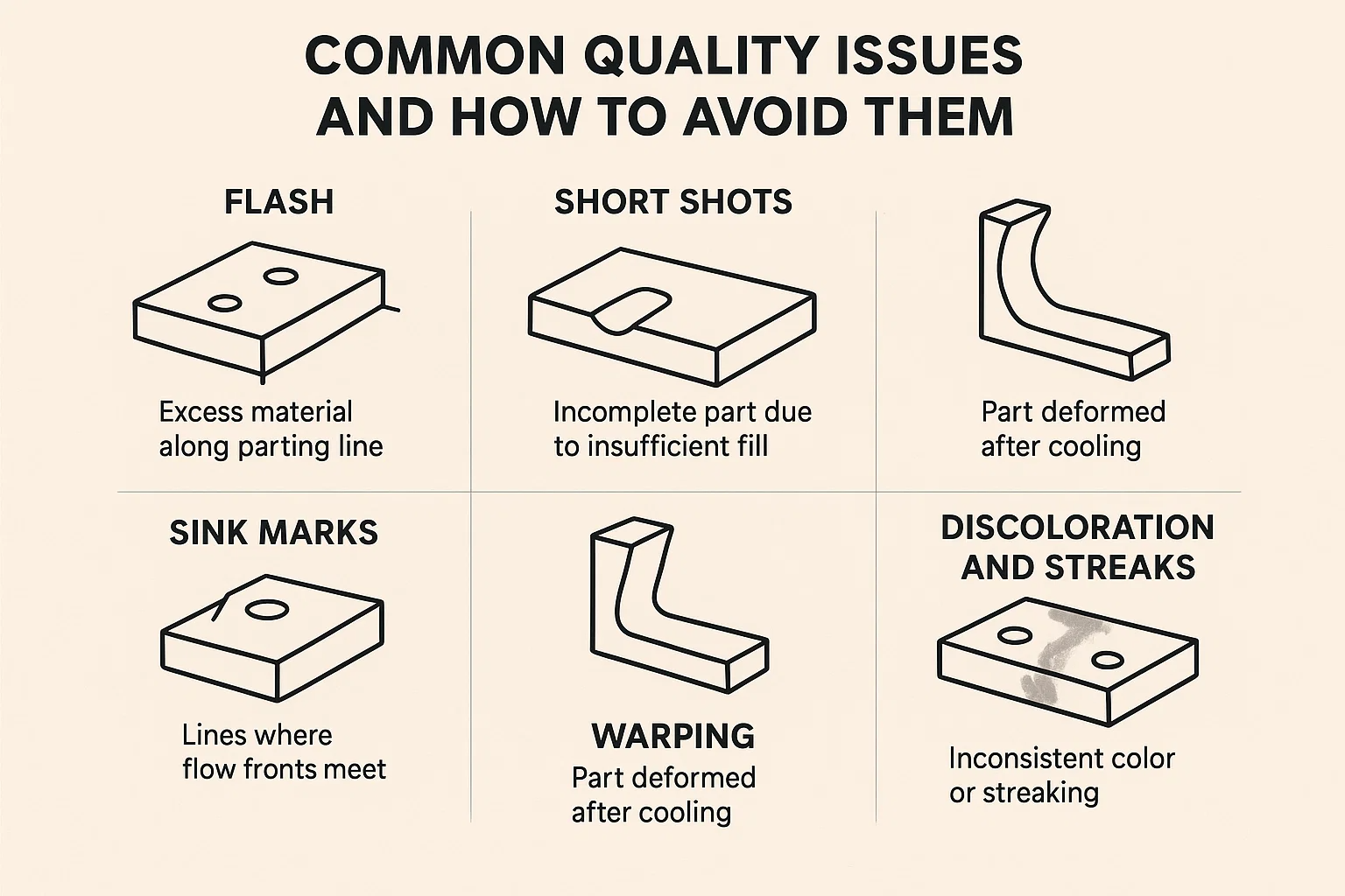 - Miért: Befolyásolja az anyagi áramlást, a töltési mintát, a hegesztési vonalak potenciálját, a mosogató jeleket és a kapu maradványát (a kis jel, ahol a futót eltávolítják).