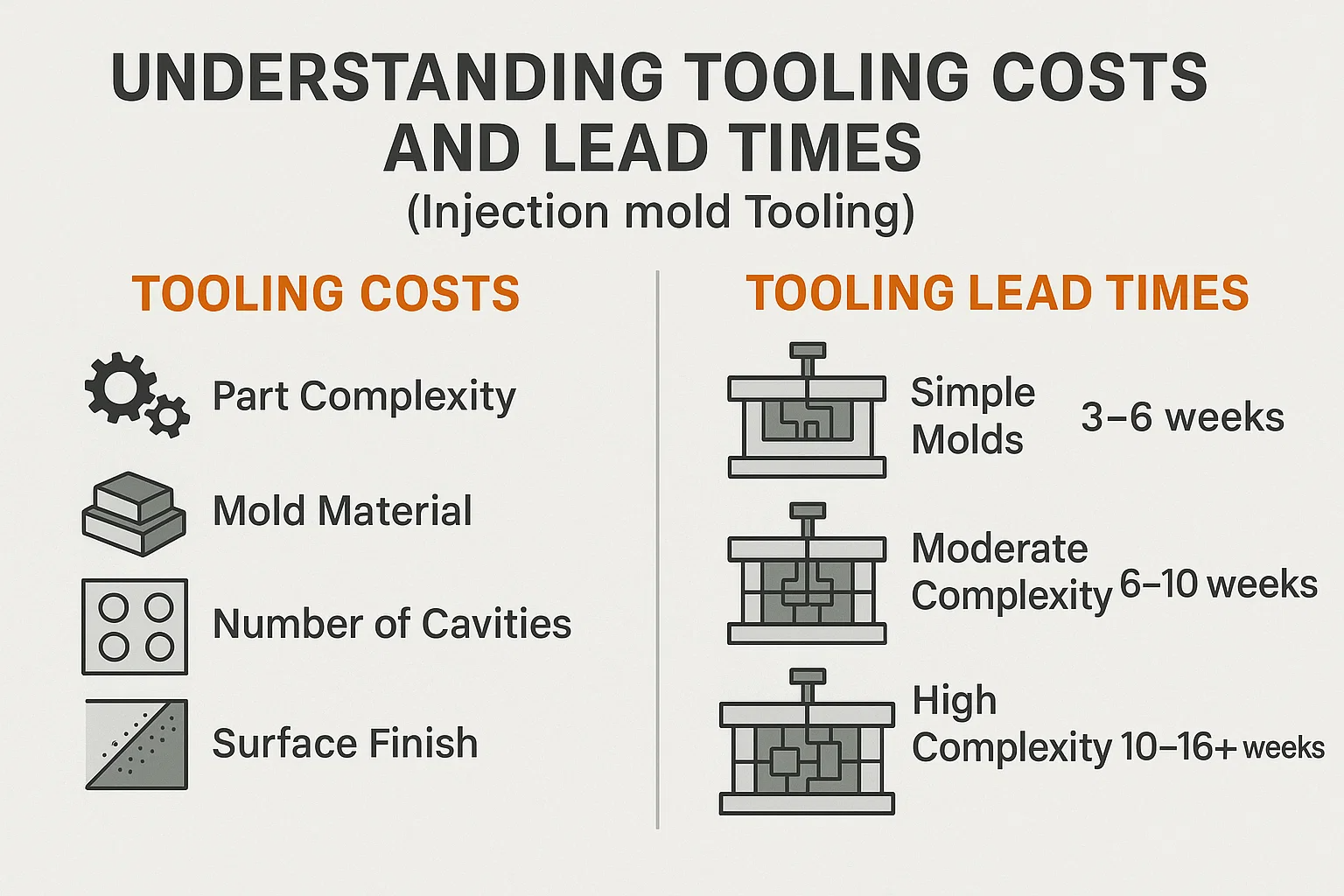 - Szerszámok átfutási ideje (amint azt tárgyaltuk): Ez a kezdeti, gyakran leghosszabb átfutási idő. Miután a penész befejeződött és validált, a tényleges alkatrésztermelés nagyon gyors lehet.